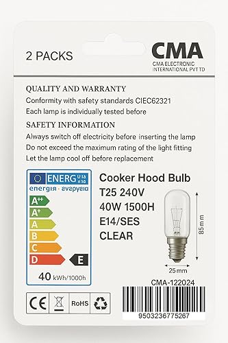 - ✅ Perfect Cooker Hood Replacement – Designed for universal fit in extractor fans, ovens, and cooker hoods using E14 small screw cap (SES) fittings.